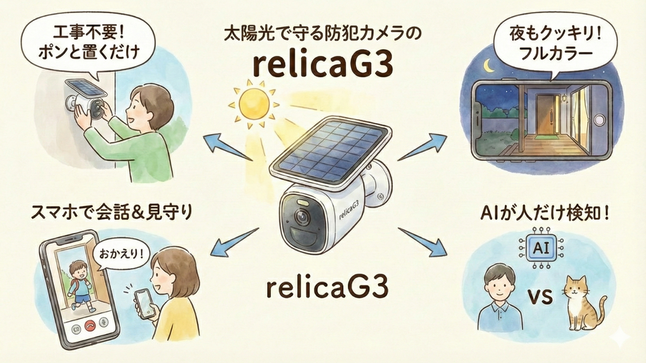 【購入される方へ】「防犯カメラは、いざという時に動かないと意味がありません。relicaG3は累計23,000台の実績があり、家電量販店でも信頼されているブランドです。類似品や中古品でのトラブルを避け、確実なサポートを受けるためにも、必ず公式通販サイトからの購入をおすすめします。